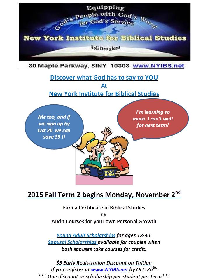New Fall Term at New York Institute of Biblical Studies begins Monday, November 2nd