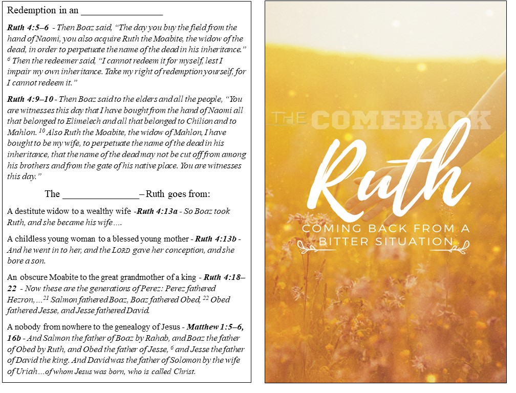 #Comeback #bitterness #Ruth #Boaz – Coming Back from a Bitter Situation – The Book of Ruth May 2, 2021 ~ nycshepherd Share this: Click to share on X (Opens in new window) X Click to share on Facebook (Opens in new window) Facebook Like Loading... Related